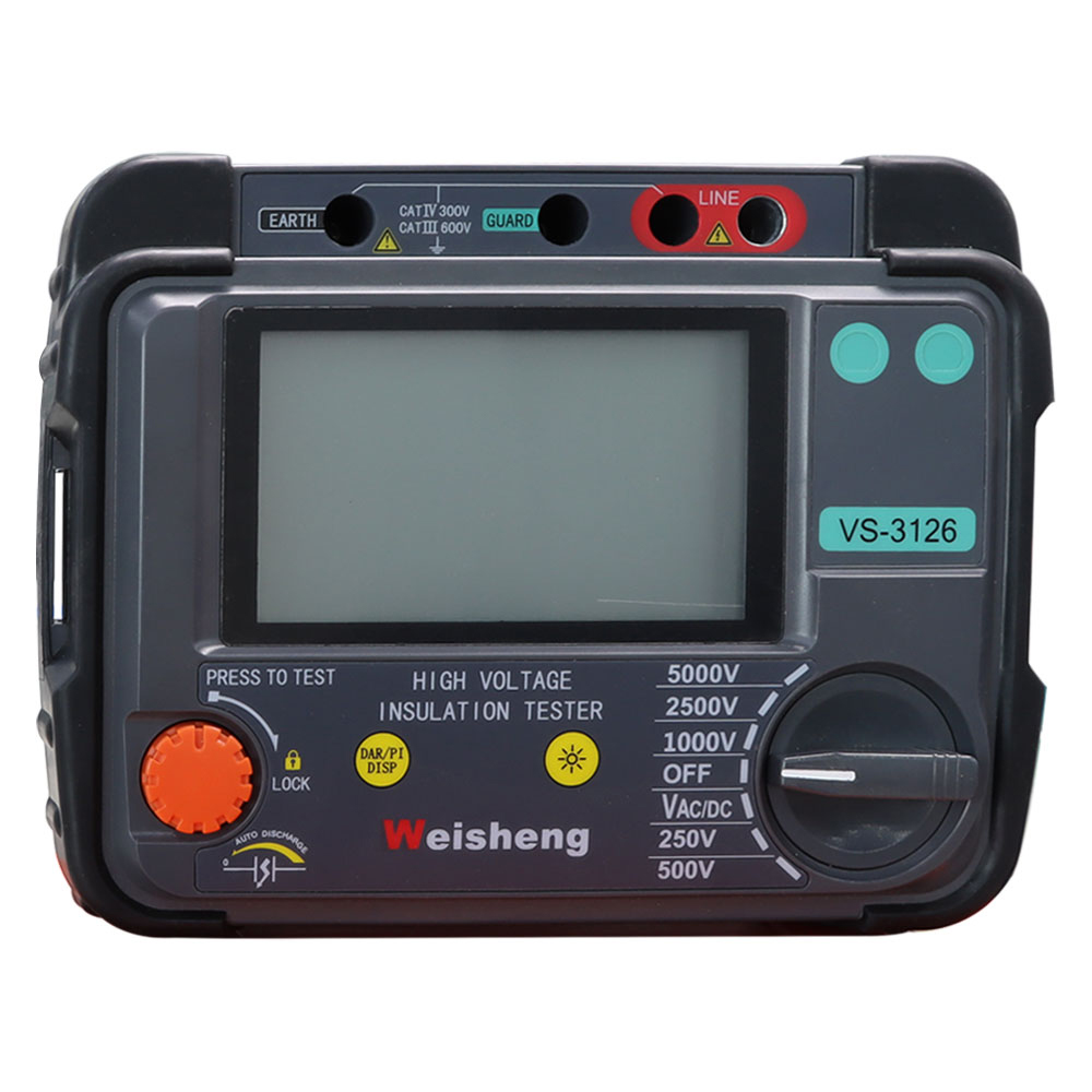 Weshine® VS-3126 jest zasilany bateryjnieTester izolacji wysokiego napięciaz cyfrowym i analogowym wyświetlaczem łuku, przeznaczony do badania rezystancji izolacji wysokim napięciem w konserwacji i serwisowaniu kabli, maszyn wirujących, transformatorów, rozdzielnic i zastosowań przemysłowych.